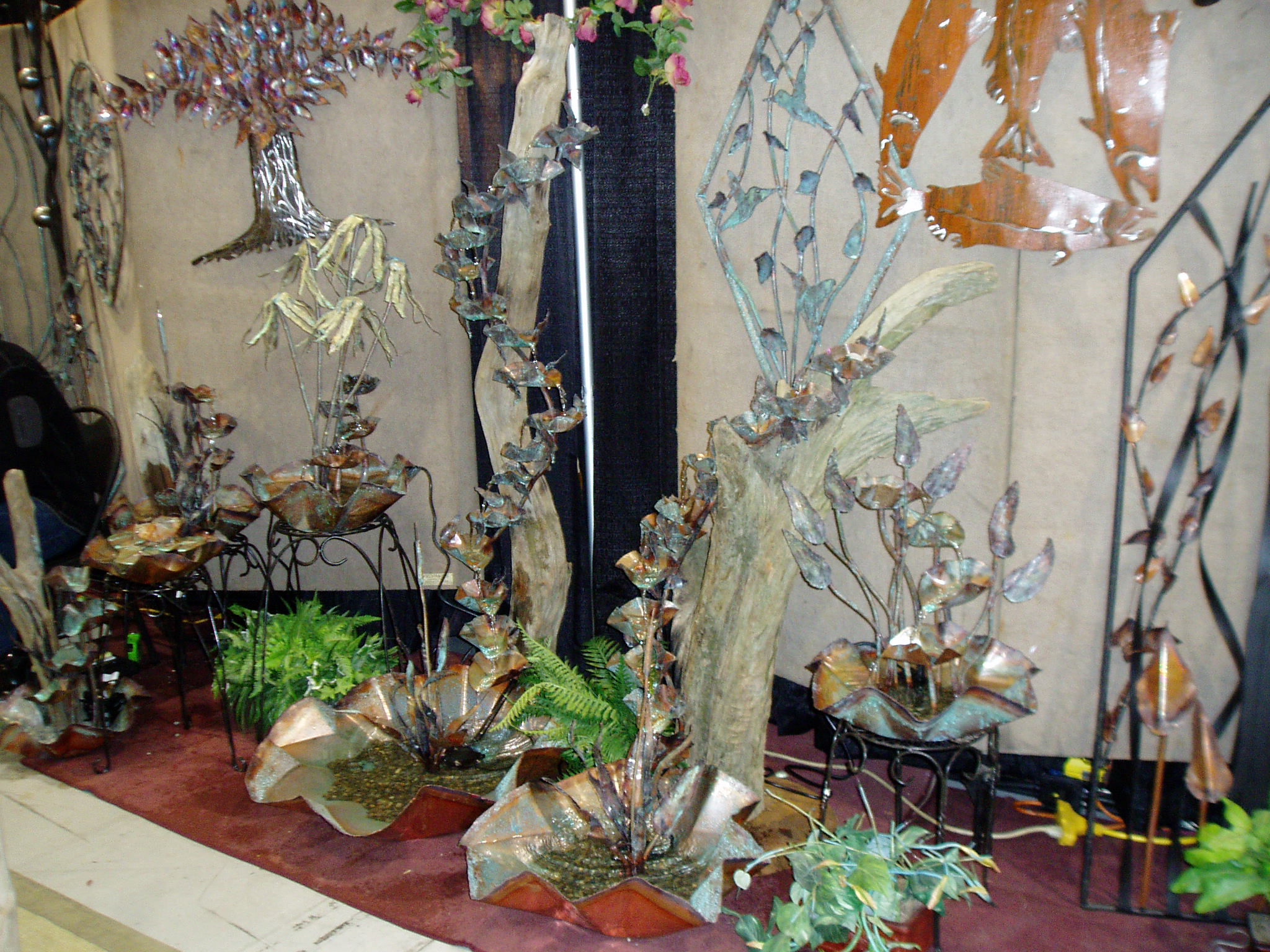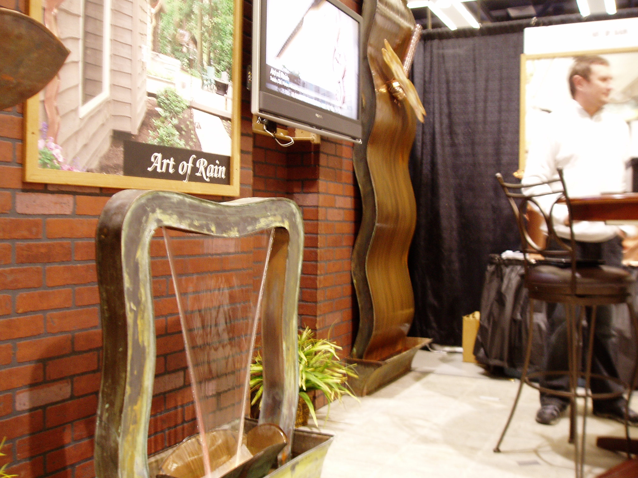 At another stall, I was intrigued by the standing fountains. Metal cups streaming down a driftwood pedestal appealed to me so much more than that classic cement boy taking a leak, or the cement fish squirting water from its mouth.