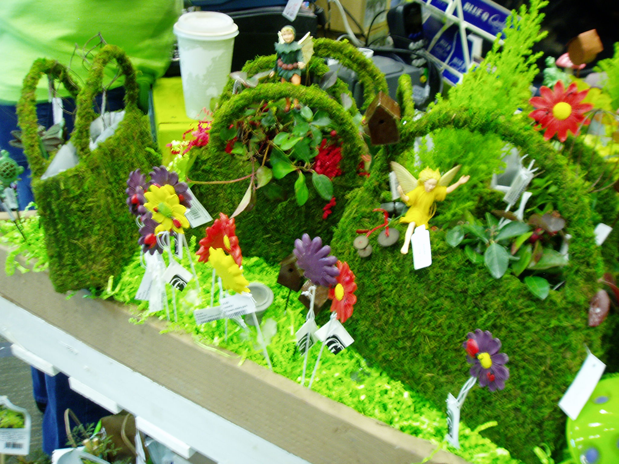 In my teens, I made a terrarium in a huge glass jar laid on its side– a bit like a ship in a bottle. It seemed very trendy at the time. There were a few samples of terrariums around the show, so maybe the fashion is coming back in style.