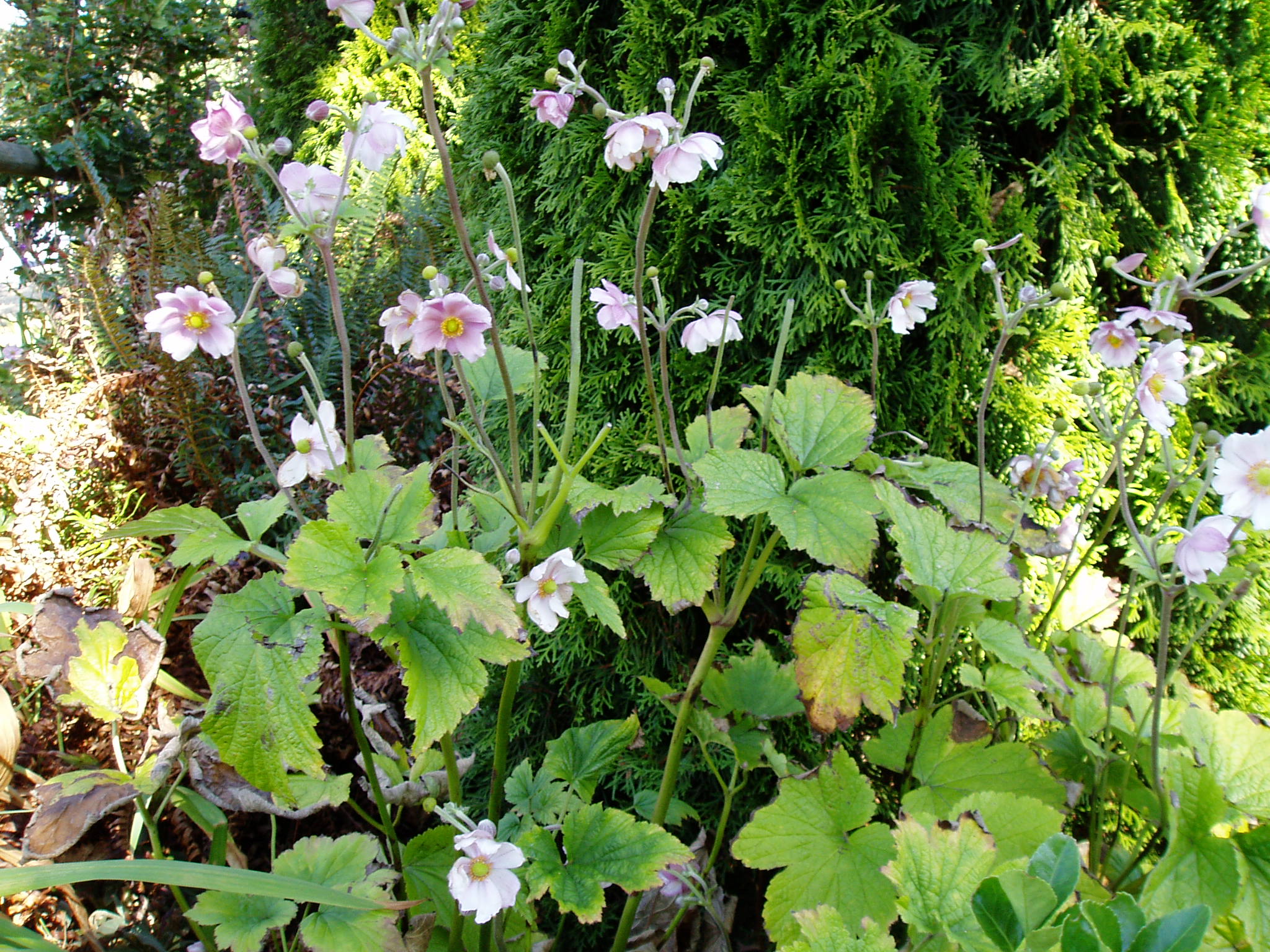 With waist-height blooms twirling in the breeze, Japanese Anemone caught my eye shortly after we moved into Richmond House. Initially, a good patch grew close to the house foundations, but it had to go because of the drain tile project.  Happily, Japanese Anemone transplant like a dream.  Their roots run along just under the soil and don’t seem bothered about being split up a bit.