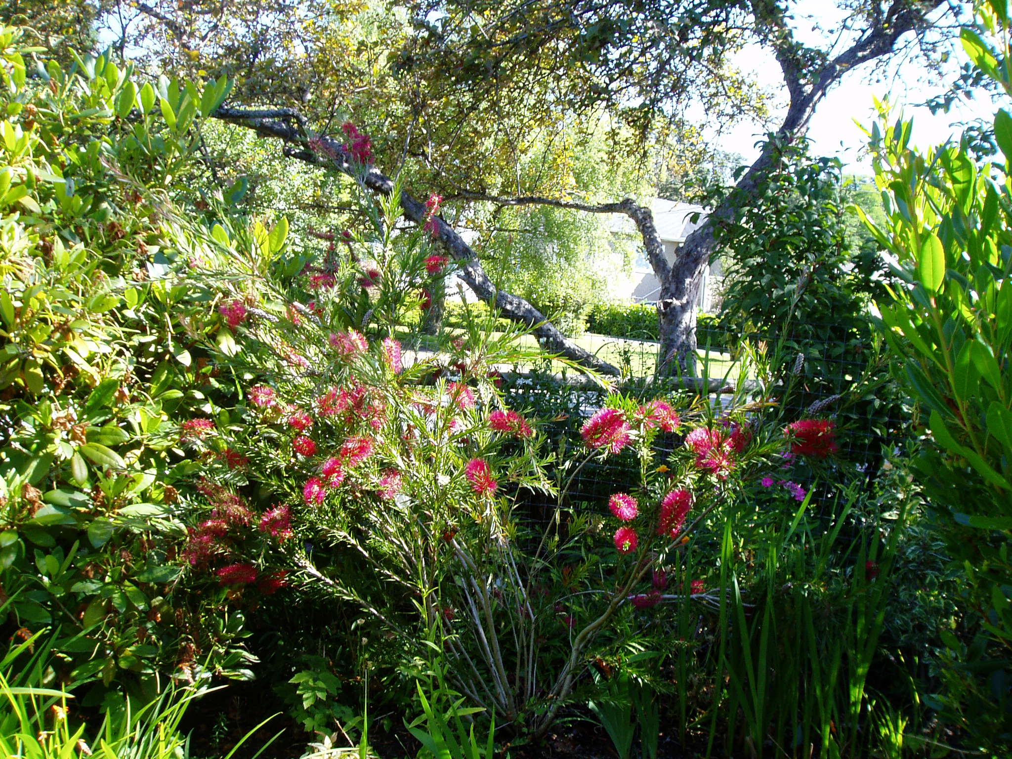 But come July, the spring spectacular in the garden fades. The hummingbirds & butterflies shift their attention as the Callistemon commands centre stage. For a couple of weeks, the red blooms are spectacular: a true summery colour.
