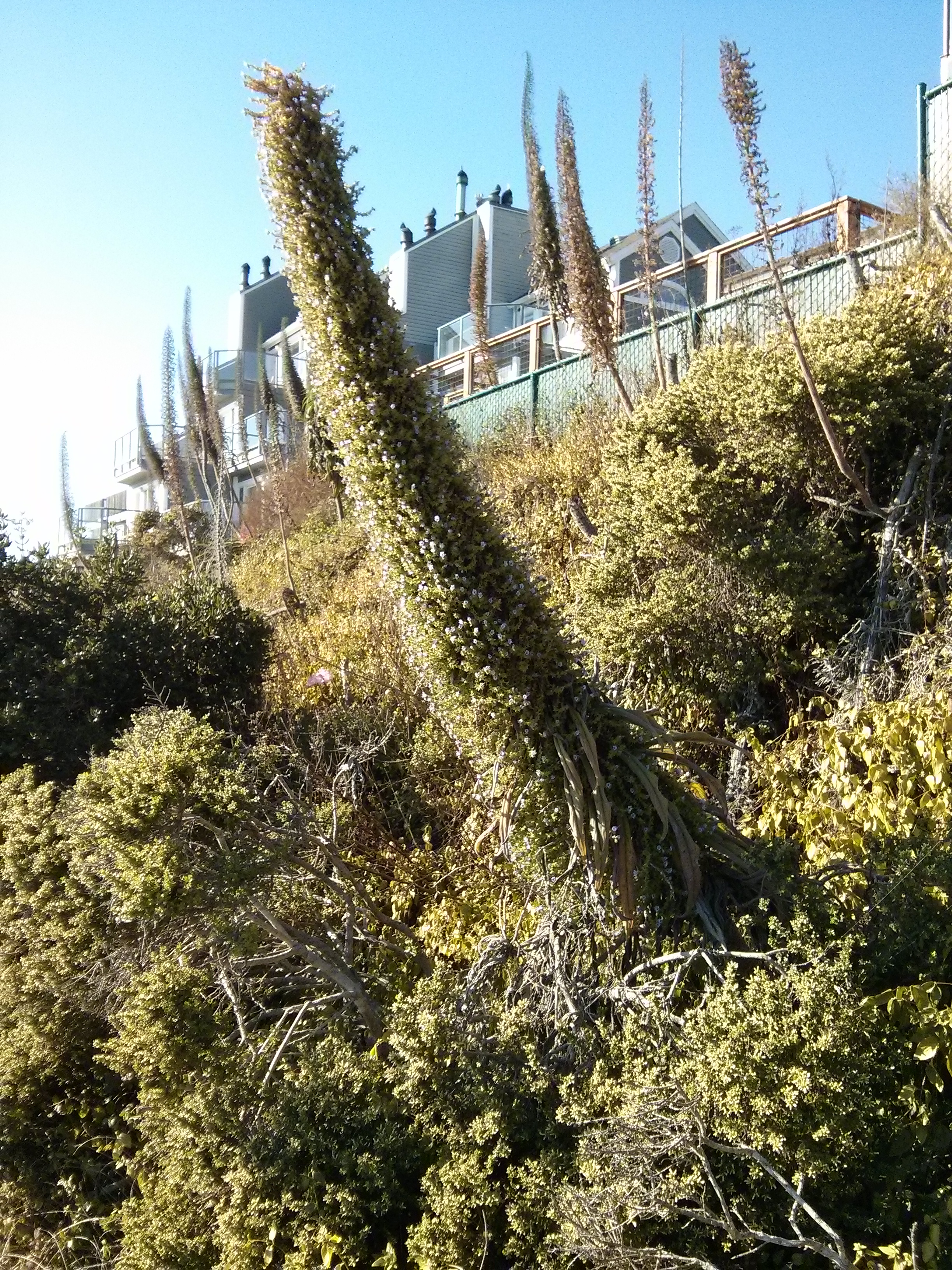 Apparently echium is often used for dramatic effect in landscape designs, but can get out of hand when it finds a location it really likes. (In Australia it’s actually considered an invasive.) In California it’s on the Watch List, but because it spreads fairly slowly it’s still welcome.
