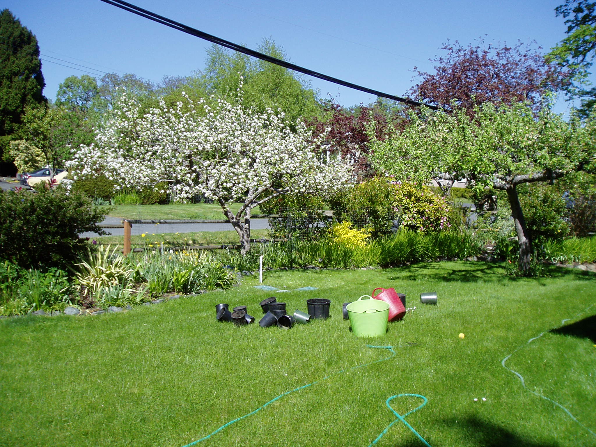 Seasonal Color trees: apples… dogwood… magnolia… chestnuts… laburnum… hawthorn… shrubs: camelia… heathers… pieris (lily of the valley shrub)… rhododendron & azalea… lilacs… weigelia… california lilac (ceanothus)… wisteria… perennials: wild violets… trillium… bleeding hearts… erysimum (wall flower)… euphorbia… myosotis (forget me nots)… pulmonaria… vinca (periwinkle)… calla lily… oregon sunshine… evergreen clematis & clematis montana… solomon’s seal… ferns: sword… giant chain… deer… the full gamut… bulbs: camas… blue bells… alium…