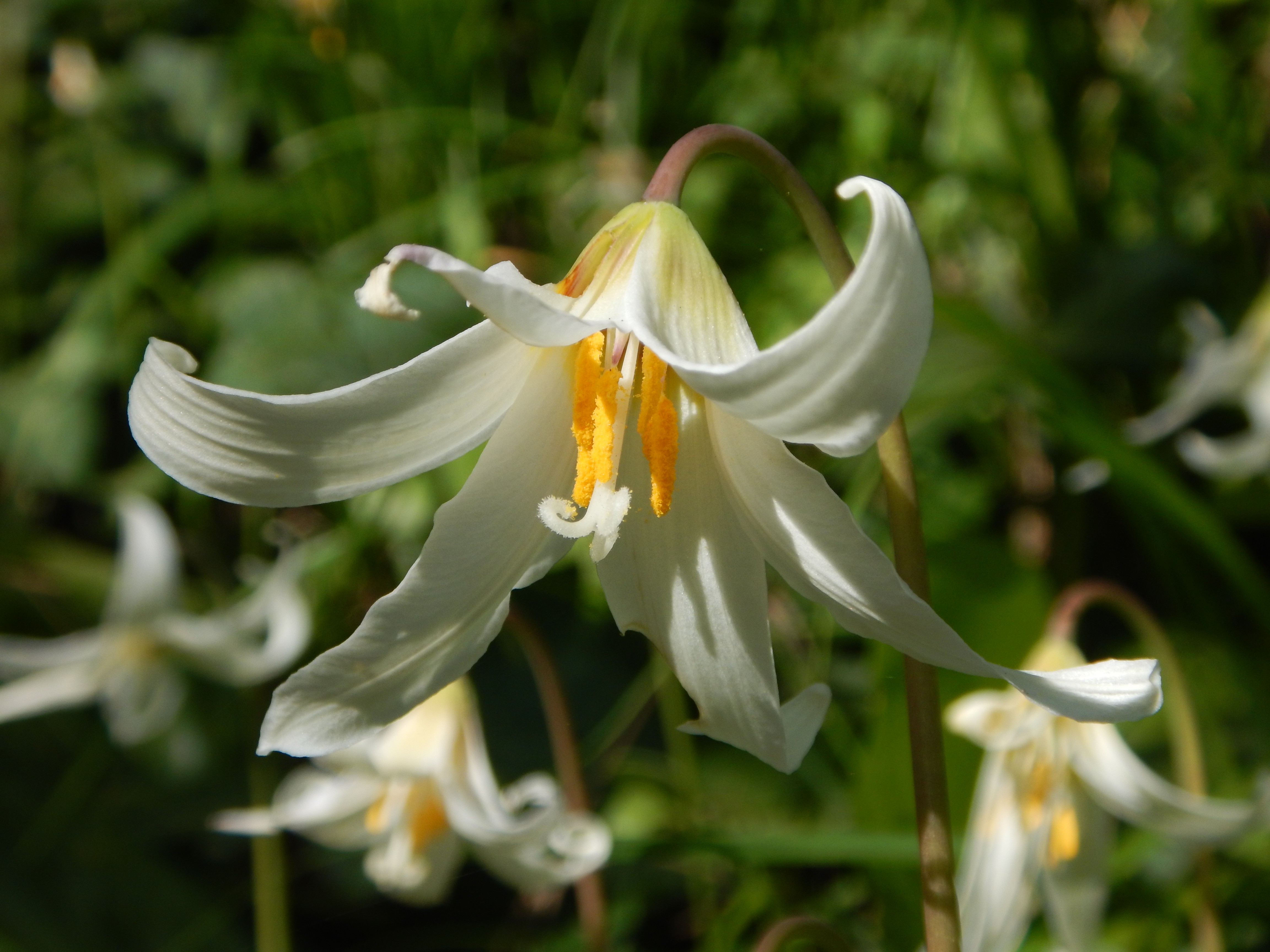 It’s a bit tough to see into the face of the fawn lily because of its nodding head but I reckon that is its way to protect those private bits from the occasional downpour. Can’t you just imagine the bees taking refuge under a fawn lily umbrella? Keeping company with a fairy or two ….