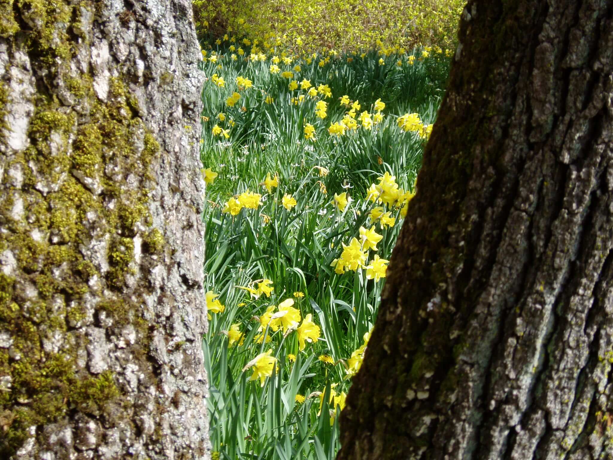 There are some tricks to growing a spring-flowering meadow. Although daffodils bloom before the grasses start to grow strongly, their leaves are still busy collecting energy for next year’s flowers when C has the uncontrollable urge to dust off the lawnmower. Zip, there goes the meadow!