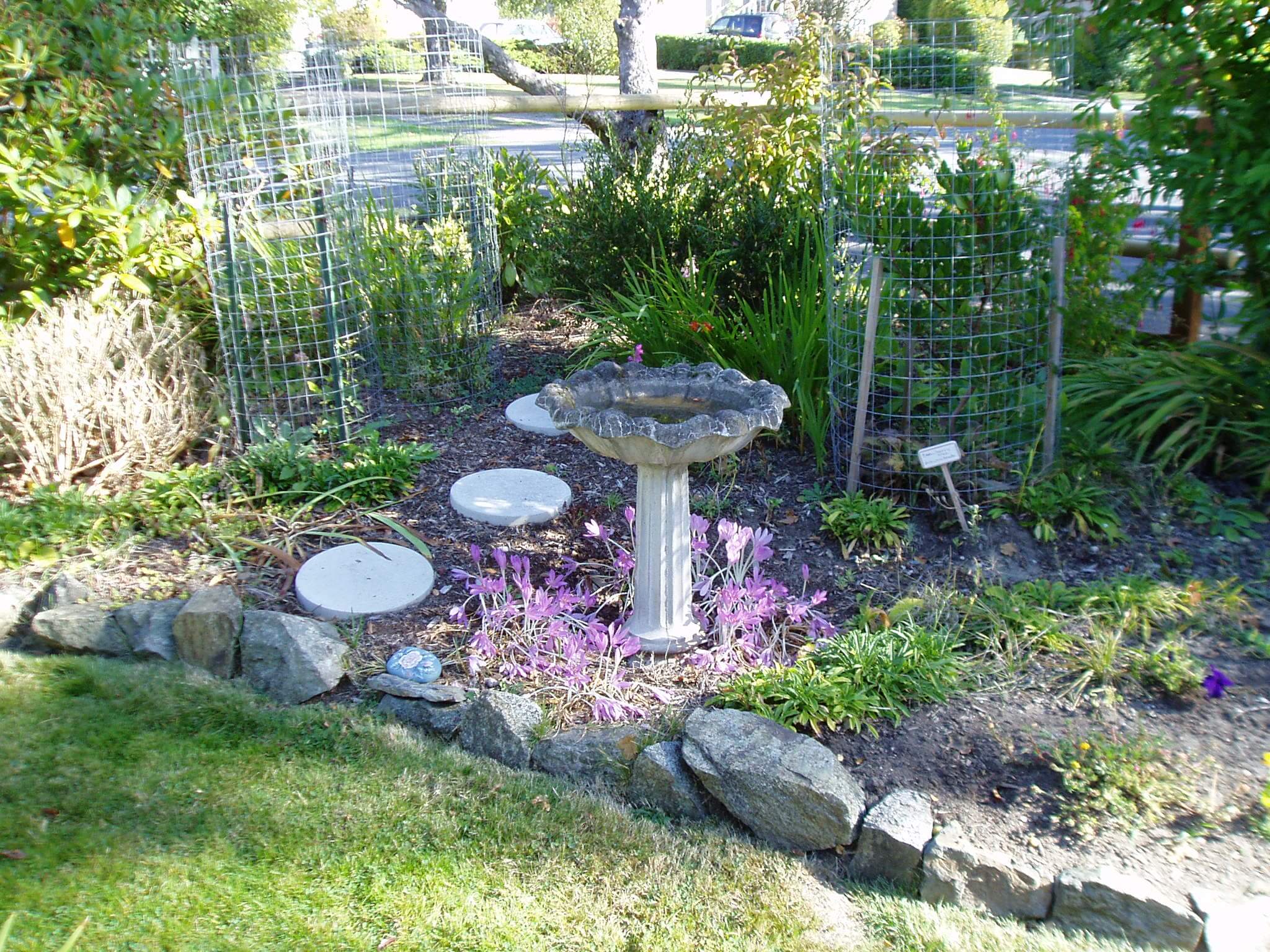Given the birdbath & tiny flower bed was awkwardly adrift in a sea of lawn, I needed imagination. It took me a while to figure out what to do with it.
