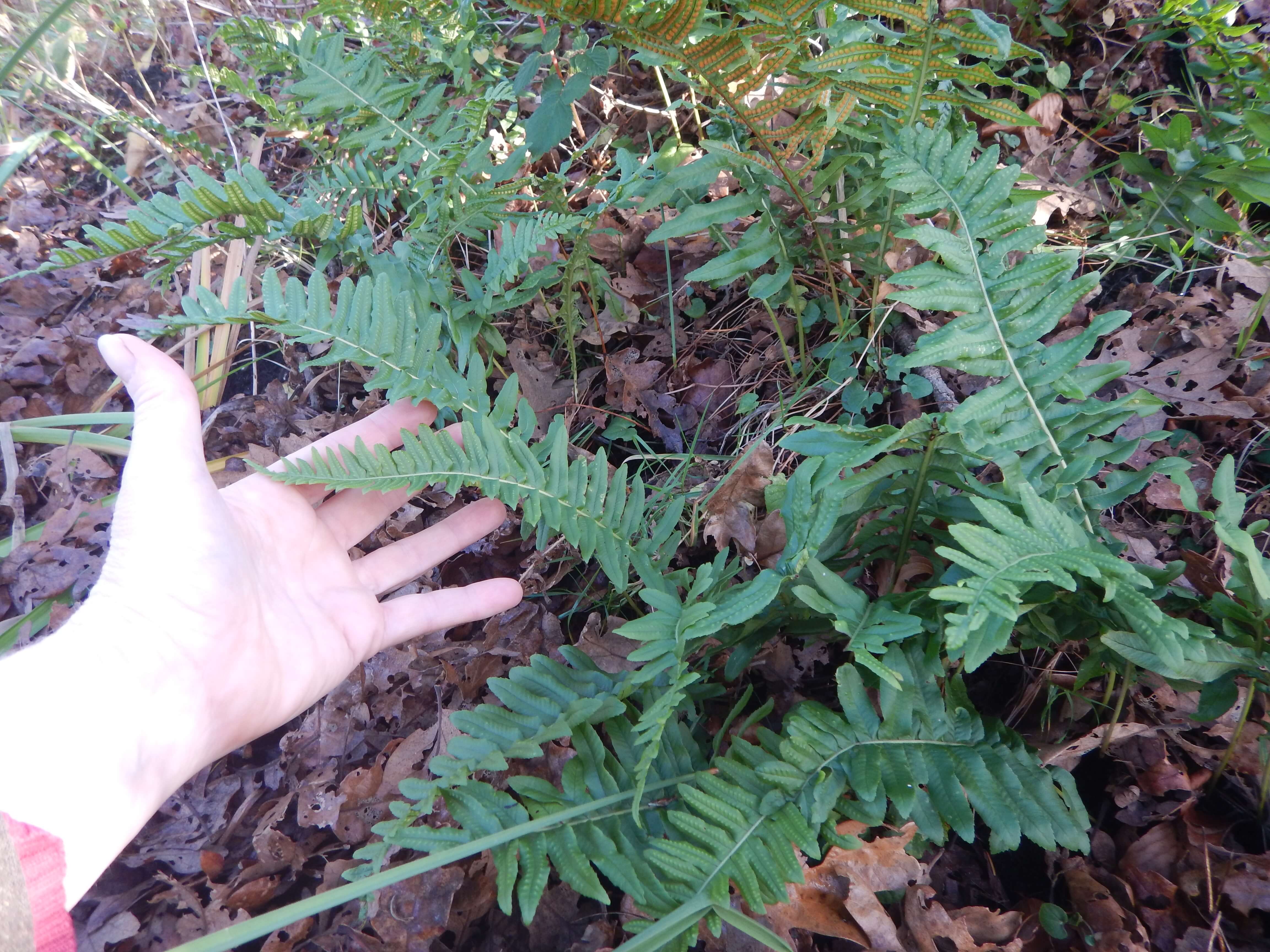 Just down the street, beside a busy pathway to the college, licorice ferns still flourish on a similar rock outcrop.