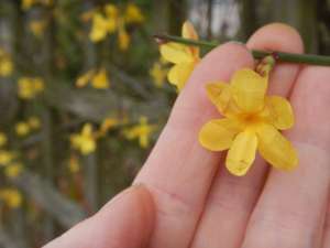 The solstice has passed, so it’s officially winter. With that, the joy of winter jasmine presents itself in our garden.