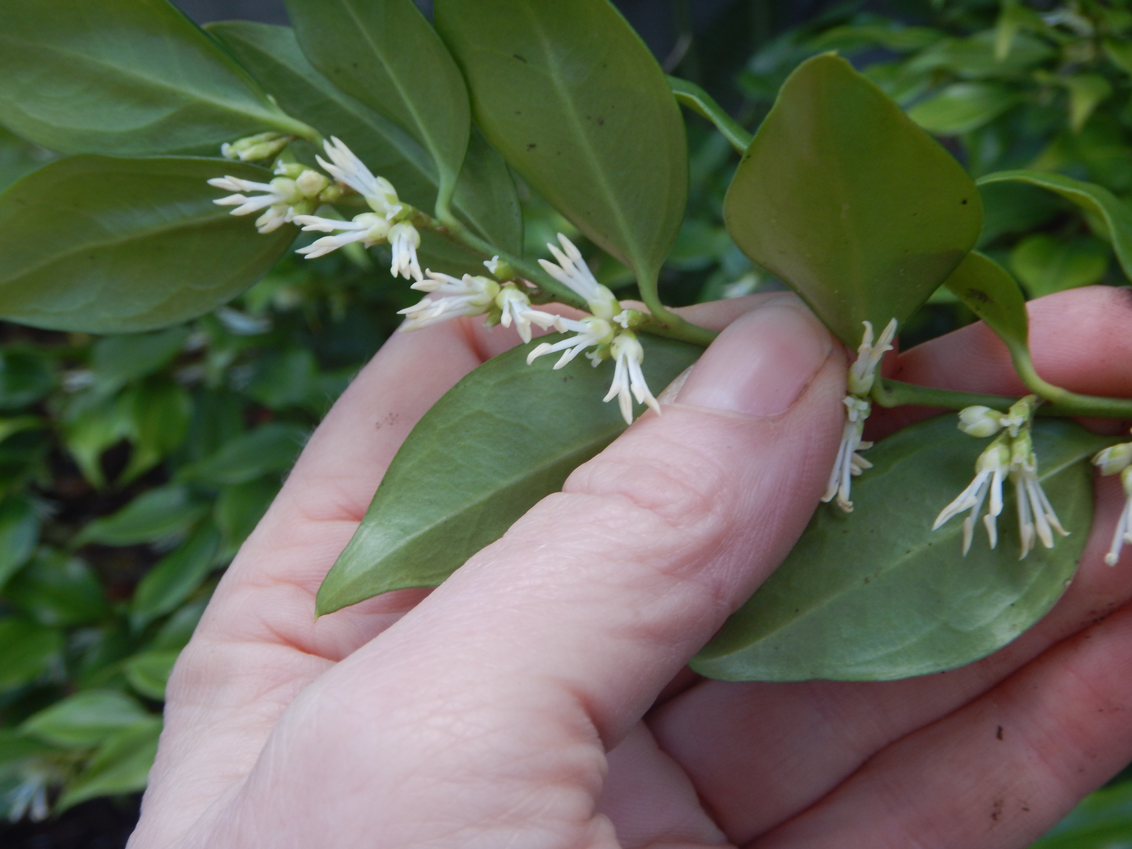 It turns out this plain shrub is strategically planted beside the porch. There’s a clue in its name: sweetbox. The scent is lovely…