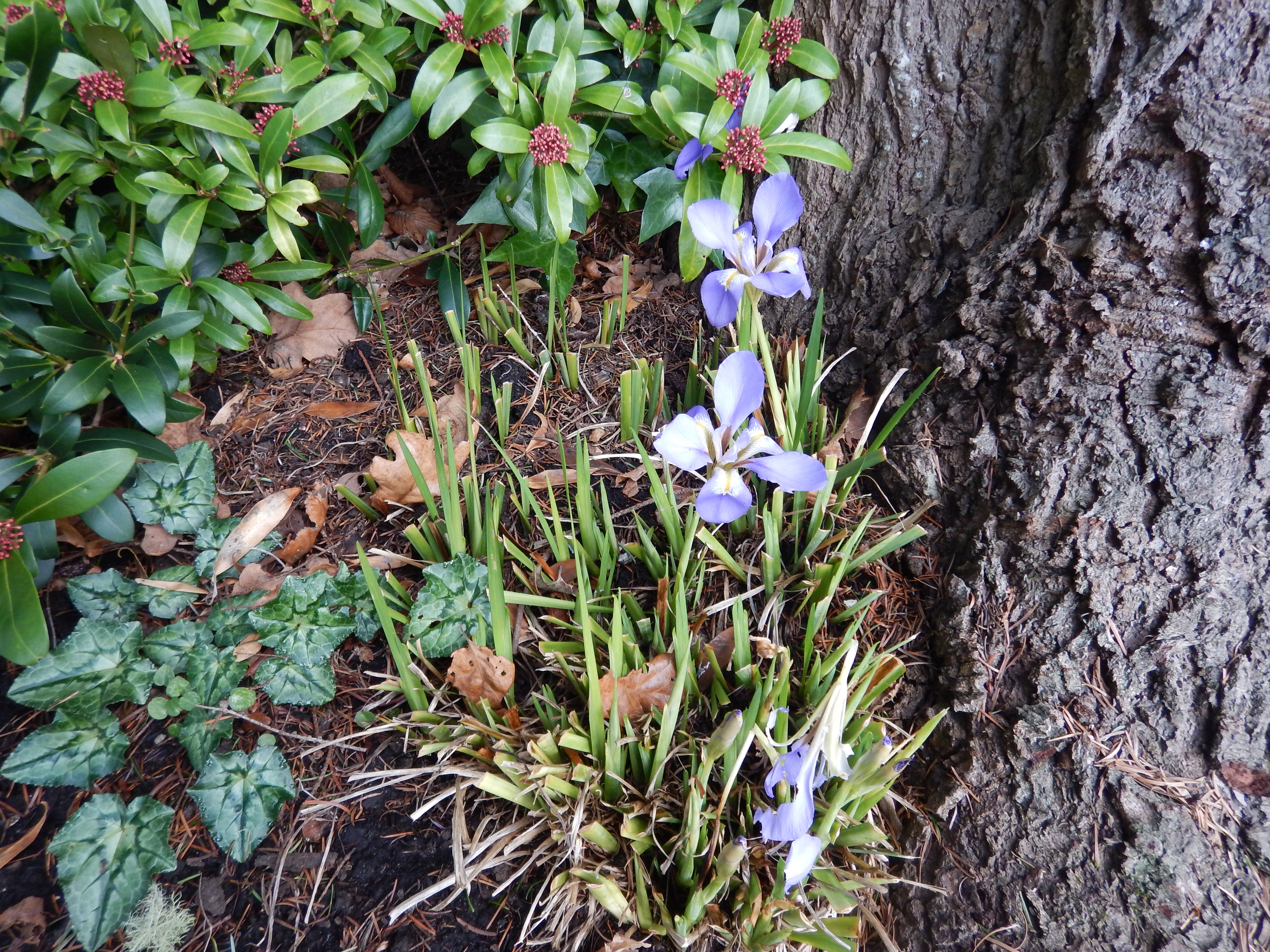This winter, the snowdrops returned, but sadly there was no sign of the tiny iris. On the bright side, comparing how much the licorice fern fronds grew through the 2 winters without browsing is nice.